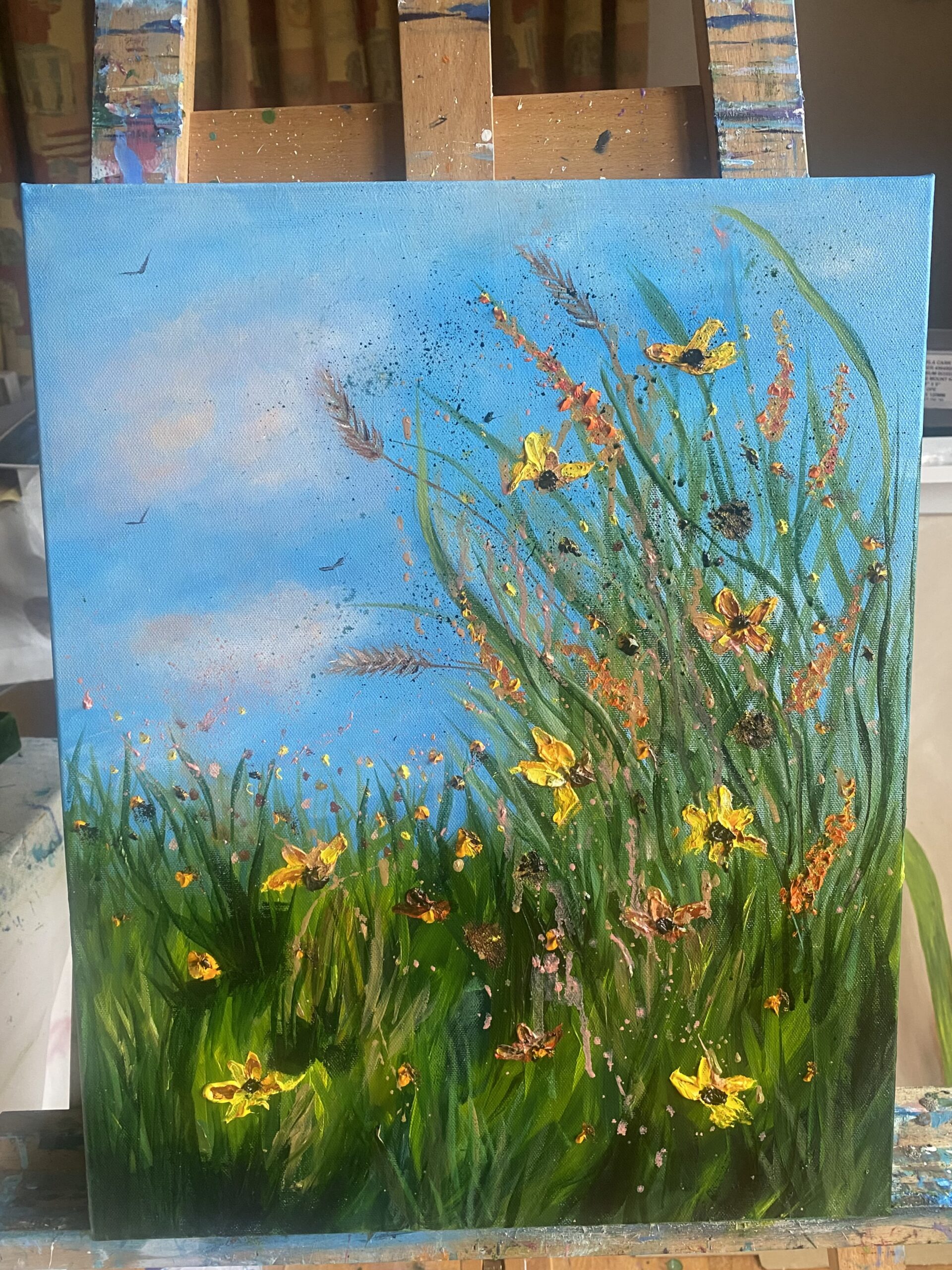 An Autumnal painting capturing the warm hues of red, orange and gold in nature to bring a comforting sense of peace and beauty to the viewer!